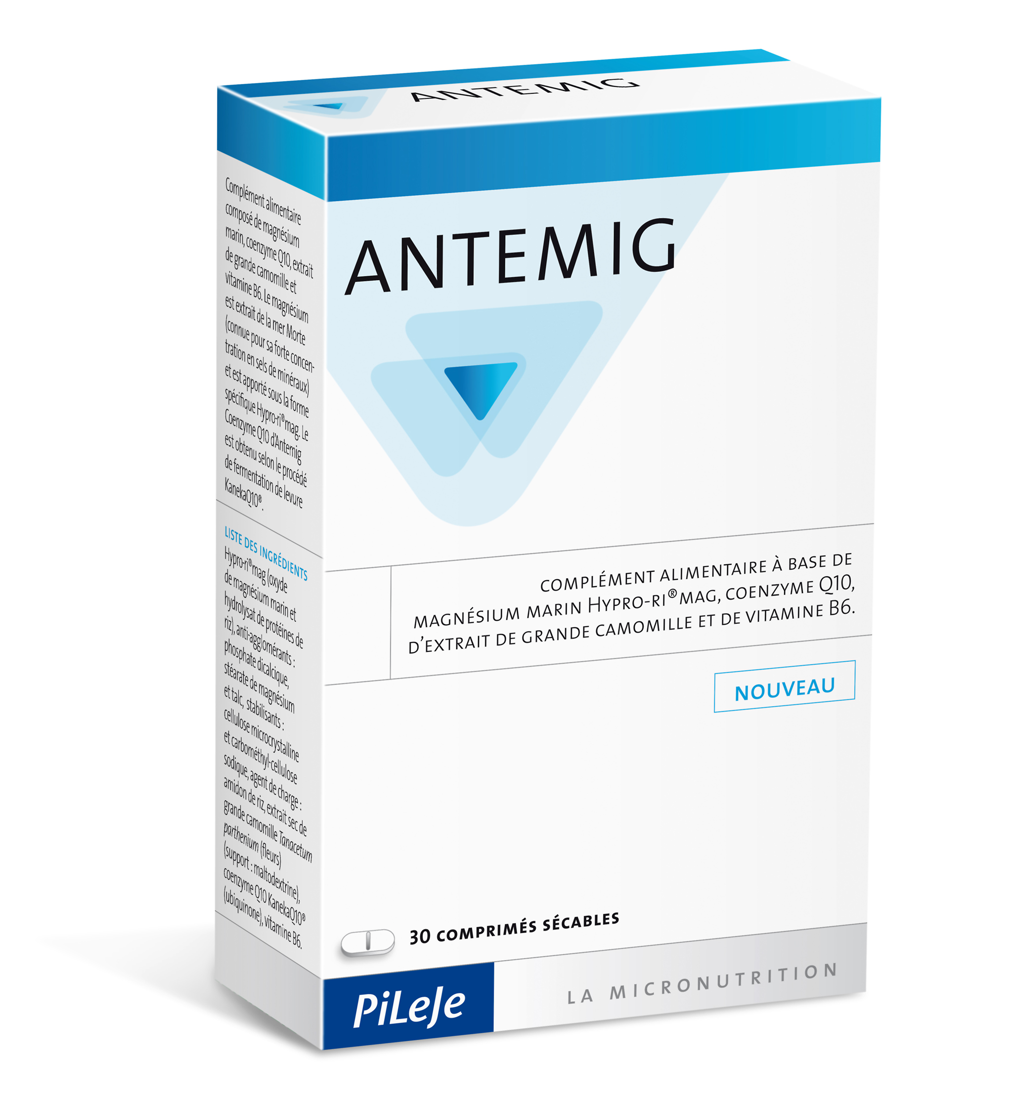 ANTEMIG je formuliran na bazi magnezija ekstrahiranog  iz Mrtvog mora, Kaneka koenzima Q10, ekstrakta cvijeta povratića uz dodatak vitamina B6.