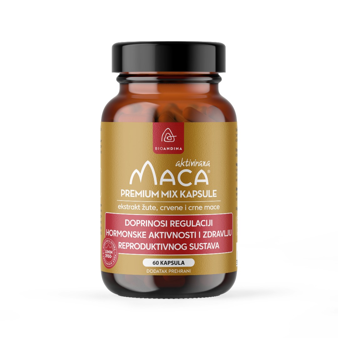 Premium MIX maca kapsule su dodatak prehrani čiji je primarni sastojak aktivirani ekstrakt žute, crvene i crne mace.